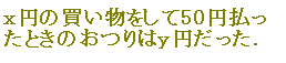 ![]() (おつり)=(支払った金額)−(品物の代金)だから (※この関係は比例でもなく反比例でもありません) →閉じる←