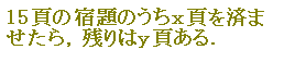 ![]() (残り)=(全体)−(済ませた分量)だから (※この関係は比例でもなく反比例でもありません) →閉じる←