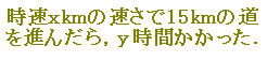 ![]() (距離)=(速さ)×(時間) すなわち(時間)=(距離)÷(速さ)なので