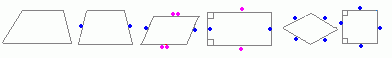 ![]() 台形,等脚台形は対角線が元の四角形を二等分するとは限りません. →閉じる← 13. どの対角線も,もとの四辺形を2つの合同な三角形に分ける.
