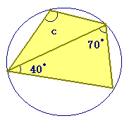 次に∠cと70°は円に内接する四角形の向かい合う内角だから∠c+70°=180° → ∠c=110°
