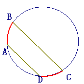 点A,B,C,Dは1つの円周上に右回りにならんでいるものとする.孤ABと孤CDの長さが等しいとき,次のうち正しいものはどれか.