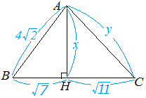 さらに求めたAHの長さとCHの長さを使って青色の三角形について三平方の定理を使うと辺ACの長さを求めることができる. ![]()