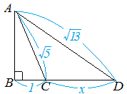 さらに相似図形の性質を使えば,AC:BC=AB:x になるので,x が求められる. ![]()