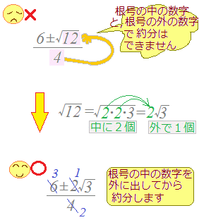 =−2±3 ※「約分する前に( )でくくる」方式で行うときは ==−2± |