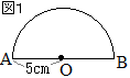 図1の半円を,直線ABを回転の軸として1回転させてできる立体の表面積を求めなさい。ただし,円周率は(徳島県2015年)