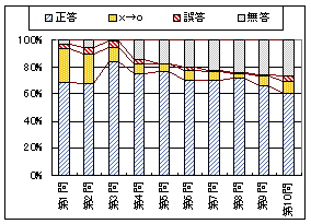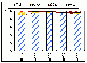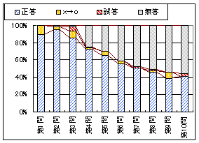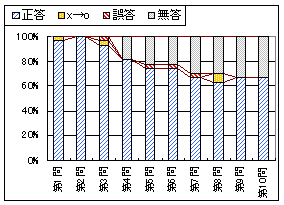 要約・解説がないので,一般には問題に着手するまでに要する時間は短いと予想されるが,「最初の問題に着手するまでの時間」が2.9秒であったことから,「指示文書は分かりやすかった」と考えられる. |