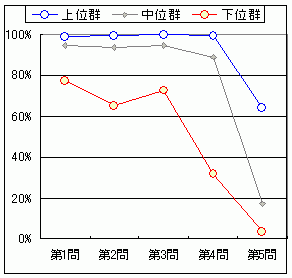 学習開始時における平均正答率は70%台で,この頁の問題は「基本問題の正答率としては普通」である.
