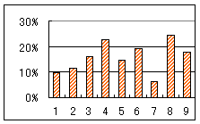 グラフ4は横軸が問題番号,縦軸がヘルプ利用率を表わす.ただし,第1問〜第4問にはヘルプは着いていない.