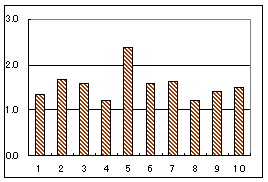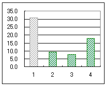 グラフ2は横軸が問題番号,縦軸は直前の操作以降その問題の採点までの所要時間(秒)を表わす.ただし,第1問は初めからの時間.