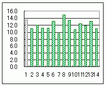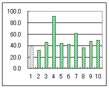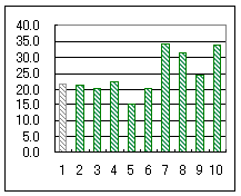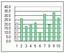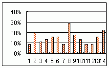 グラフ2は横軸が問題番号,縦軸は直前の操作以降その問題の採点までの経過時間(秒)を表わす.ただし,第1問は解説を読む時間を含む.