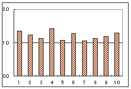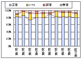 学習開始時において平均正答率は80%台で,この頁の問題は回答者にとって「非常にやさしい」問題になる.