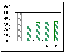 これによれば,第4問,第5問における中位群の正答率は「やさしい問題」における自然な値を示しているが,第1問における中位群の正答率が不自然な位置にある.