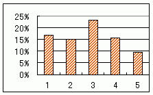 グラフ3は問題ごとの試行回数を表わす.(ただし,同一問題を16回以上試行した答案については16回と見なす.)