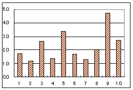 グラフ2は横軸が問題番号,縦軸は直前の操作以降その問題の採点までの経過時間(秒)を表わす.ただし,第1問は初めからの時間.