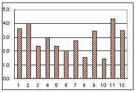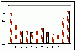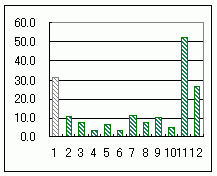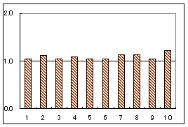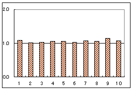表1は異なる期間における各問題の正答数(件数)の一覧で,この表によりχ2で独立性の検定を行うとp=0.9999となり,期間による有意差はなく(帰無仮説採択)消極的根拠ながら再現性が認められる.