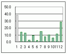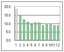 グラフ3は問題ごとの試行回数を表わす.(ただし,同一問題を16回以上試行した答案については16回と見なす.)