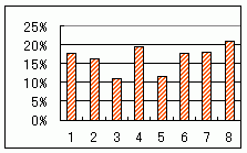 グラフ3は問題ごとの試行回数を表わす.(ただし,同一問題を16回以上試行した答案については16回と見なす.)