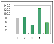グラフ2は横軸が問題番号,縦軸は直前の操作以降その問題の採点までの経過時間(秒)を表わす.ただし,第1問は初めからの時間.