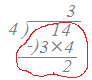 右図のように,14÷4=3…2のとき,「割り算の中身は引き算になるから」14−4×3=2 → 14=4×3+2