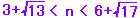 ※この問題は2乗せずに近似値で解けます。近似値でよく、正確な値は必要ありません。 9<13<16 だから 3<√13<4 16<17<25 だから 4<√17<5 に注意すると 3+3.・・<n<6+4.・・ 6.・・<n<10.・・ n = 7,8,9,10 |