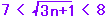 2乗で考えると 49<3n+1<64 48<3n <63 16<n<21 n=17,18,19,20 |