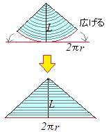 底辺はπr 高さはL ⇒ S=πrL (他の考え方2)