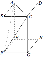 右の図のように,AB=BC=2cm, BF=4cm の直方体ABCD-EFGHがある。この直方体を頂点A, C, Fを通る平面で分けたときにできる三角