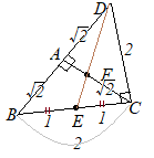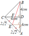 右図のように△ABC, △ACD, △BCDはいずれも直角二等辺三角形で辺の長さの比は1:1:BC=2, CD=2 EC=1 EF+FDはE, F, Dが1直線上にあるとき最小になる. △ECDに三平方の定理を使うと, |