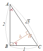 右の図のような直角三角形ABCにおいて,頂点Bから辺ACに引いた垂線の長さhを求めるには
