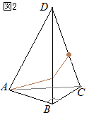 側面の展開図は扇型になり,その中心角をθ°とする.底面の円周と扇形の弧の長さと一致するはずだから そこで,右図の三角形ABDにおいて∠BAD=90° BDは直線になるときに最短になるから,三平方の定理を使って,線分BDの長さを求める. |