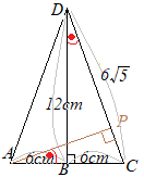 底面をABCとし,BDを高さとするとされているから,BDは底面ABCと垂直.したがって,BDはABともBCとも垂直.そこで,△ABD, △BCDの展開図は右図のようになり,DCの長さは三平方の定理を使って求められる. 右図においてAP⊥DCのときAPに長さが最短になる.このときAPの長さは,次のように求めれる. (考え方1)…相似図形と相似比で考える 図において2つの直角三角形DBCとAPCは相似図形だから,斜辺から CD:DB=CA:APが成り立つ.すなわち ゆえに (考え方2)…面積を2通りの方法で表す 三角形DABの面積をSとおくと これらは等しいから |