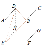 右の図は,1辺の長さが3cm の立方体ABCD- EFGHである。この立方体を3点B, D, Eを通る平面で2つの立体に分けるとき,2つの立体の表面積の差は何cm2か。