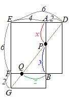 右図の展開図において,DE:EG=6:8だから,AP=xとおくと2:x=6:8 したがって 次に z:y=6:8 三角すいBPQCの底面△PQBの面積は 三角すいBPQCの体積は |