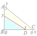 y=ax+bとおいて,a, bを求める. D(2, 3)を通るから 3=2a+b…(1) C(5, 0)を通るから 0=5a+b…(2) a, bの連立方程式(1)(2)を解く. (2)−(1) −3=3a a=−1 これを(1)に代入 b=5 ゆえに y=−x+5…(答)