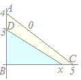 3点A(0, 4), B(0, 0), C(5, 0)を頂点とする△ABCがある. 線分AB上の点D(0, 3)を通り△ABCの面積を二等分する直線と線分BCの交点をEとするとき,点Eのx座標を求めてください. 解説