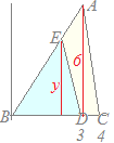 △ABCの面積はEのy座標をyで表すと △EBDの面積は △ABCの面積を二等分しているのだから ABの直線の方程式は だから, ゆえに