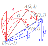 ○面積の比はとおくと L=3 y座標は2になる. AB:QB=4:Lとおくと, 底辺の比は3:2 高さの比は4:L よりL=3 y座標の差を考えるとAB:QB=3−(−1):y−l(−1)=4:y+1 これが4:3になるのだからy=2 Qは直線AB:y=x上の点だからx=2 Q(2, 2)…(答)