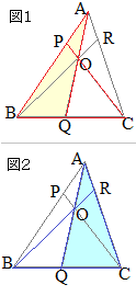 ※チェバの定理の式自体は,メネラウスの定理と全く同じ形になりますが,P, Q, Rの場所が違います.