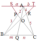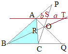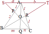 AからBCに平行な直線をひき,CPとの交点をS,BRの延長との交点をTとし,CR=m, RA=n, SA=a, ST=bとおくできなくても,涼しい顔ということで・・・