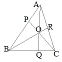 メネラウスの定理では3点P, Q, Rは1直線上に並びますが,チェバの定理では,それぞれ辺AB, BC, CAにあります.
