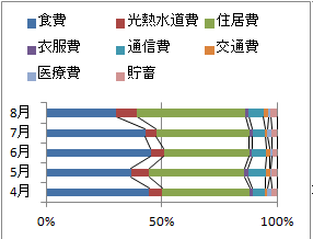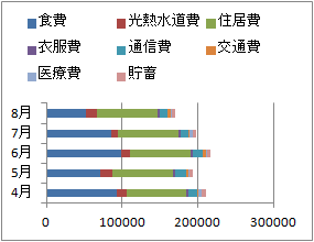 1.4 積み上げ棒グラフ・帯グラフ 次の表のような家計・支出表を棒グラフにしたい場合,