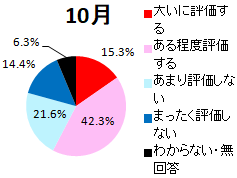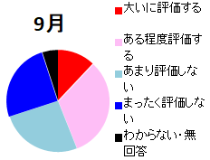 【例2.1】右のグラフは,国のある政策に対するアンケート集計結果だとします. アンケート結果のように各項目の割合を分かりやすく示すには,円グラフが適しています. 円グラフは,ほぼ次の目安に沿って作られます.(「絶対に」とは言えませんが,次のように描く方が見やすく,多くの円グラフはこうなっています)