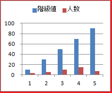 縦棒グラフを選ぶと左図のように,階級値と人数の複数系列の棒グラフになります.これはヒストグラムではありません. ヒストグラムにするには,初めに2列の範囲を選択してから「散布図」を選びます.一旦,マーカーで示される点になりますので,次にグラフの領域を右クリックして「グラフの種類の変更」→縦棒グラフを選びます. ![]() ![]() |
