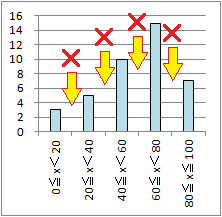 柱の順序は階級値の順序に従って並べ,勝手に変えられない. |