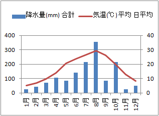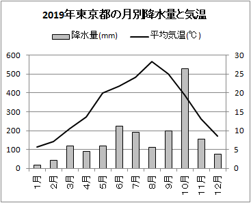 右の表5は,1981年〜2010年までの札幌と那覇の降水量-気温の月平均値です.