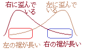右の裾が長い分布は右に同様にして,左の裾が長い分布は左に歪んでいるという.